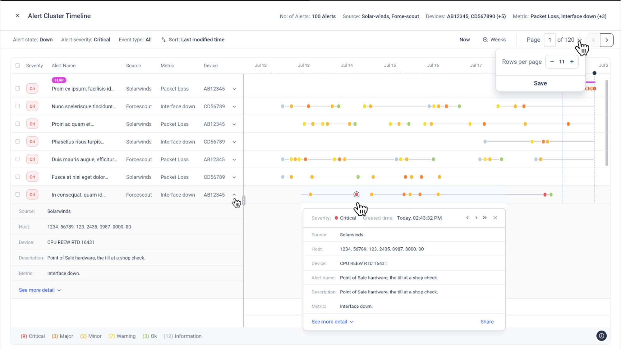 Alert Cluster Timeline can be filtered by Alert state, Alert severity and Event type. Change the filter and save to view related alerts.