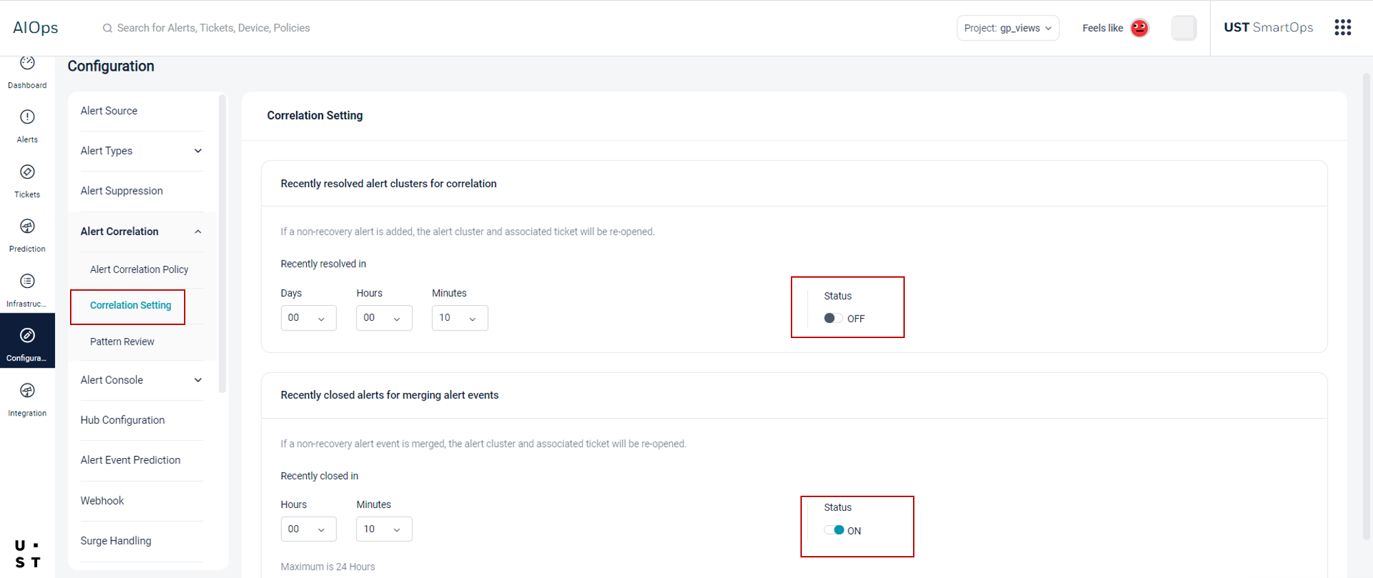 The Correlation Setting allows you to use recently resolved alert clusters for correlation.