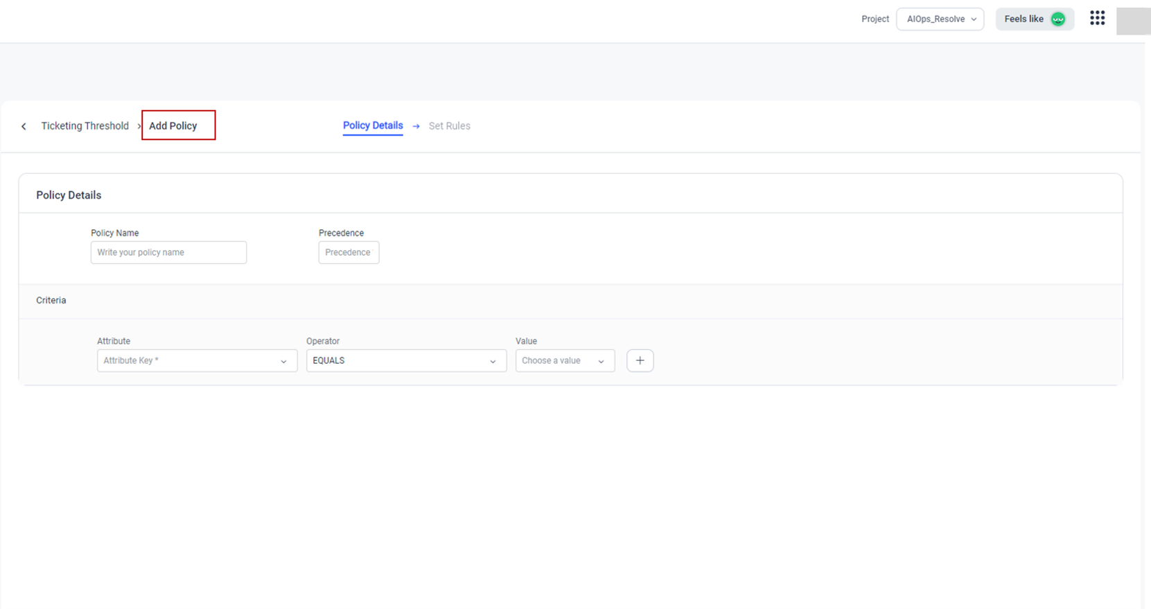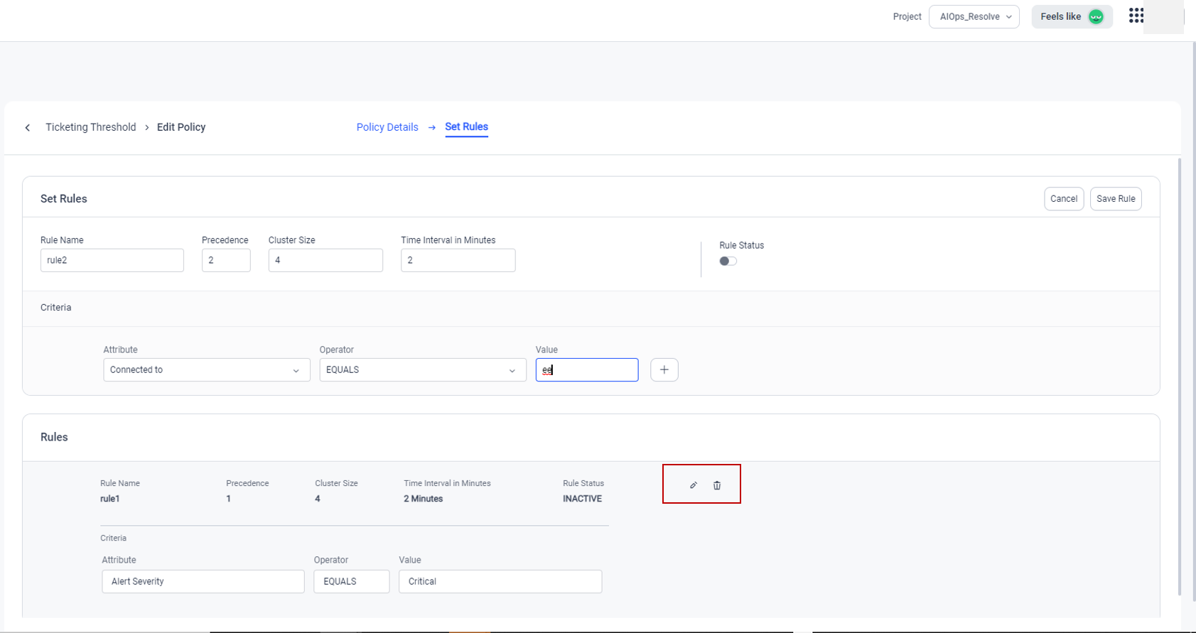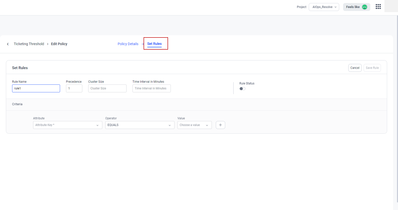 Select Save and Continue, Set Rules option will get enabled. You can set specific rules from this screen to further refine the corresponding policy.