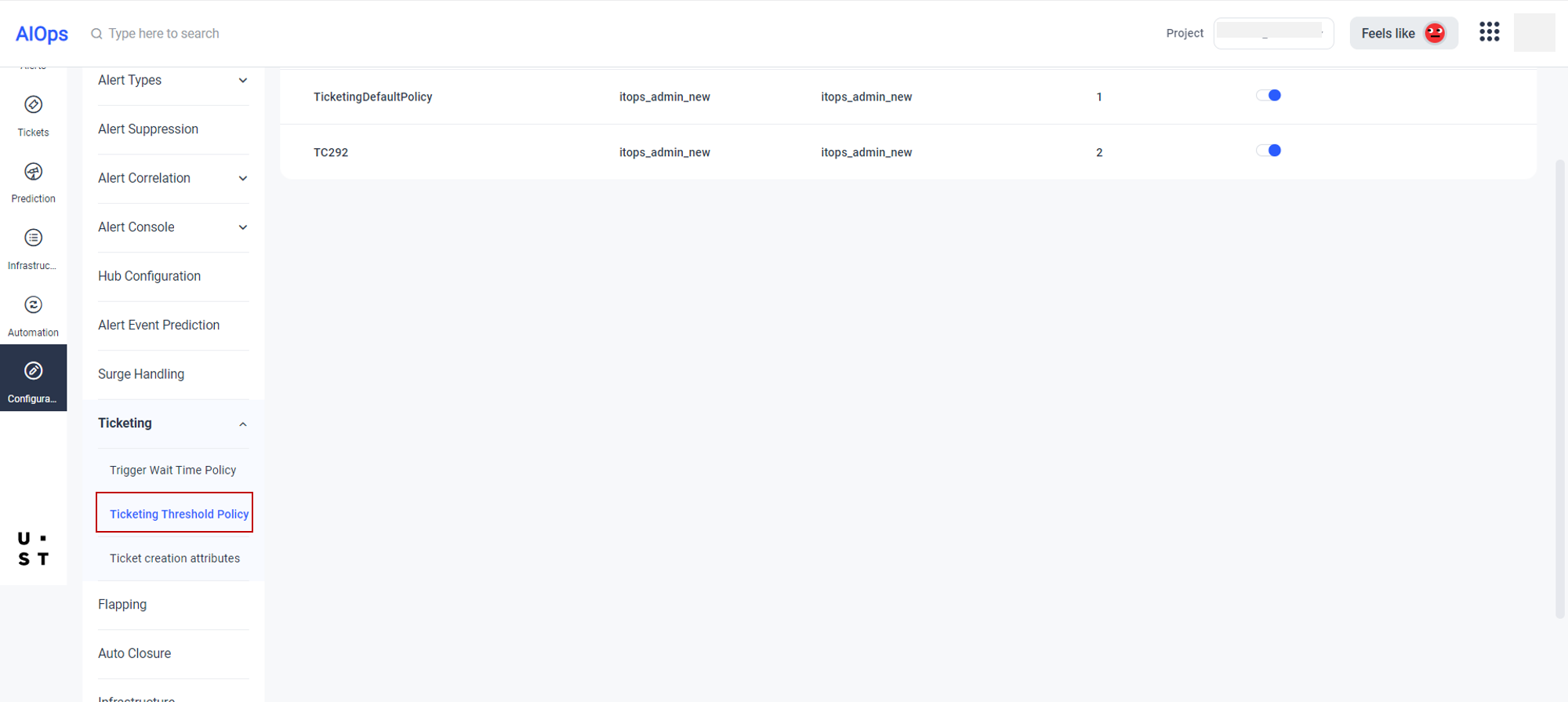 - Select Ticketing Threshold Policy on the left pane by expanding Ticketing.