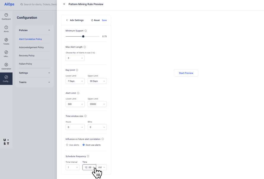 The preview is a two-step process which uses historical data within AIOps to illustrate how this feature will impact alert correlation.