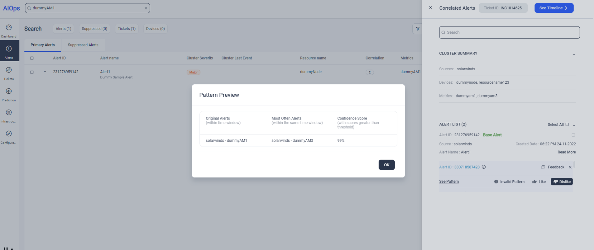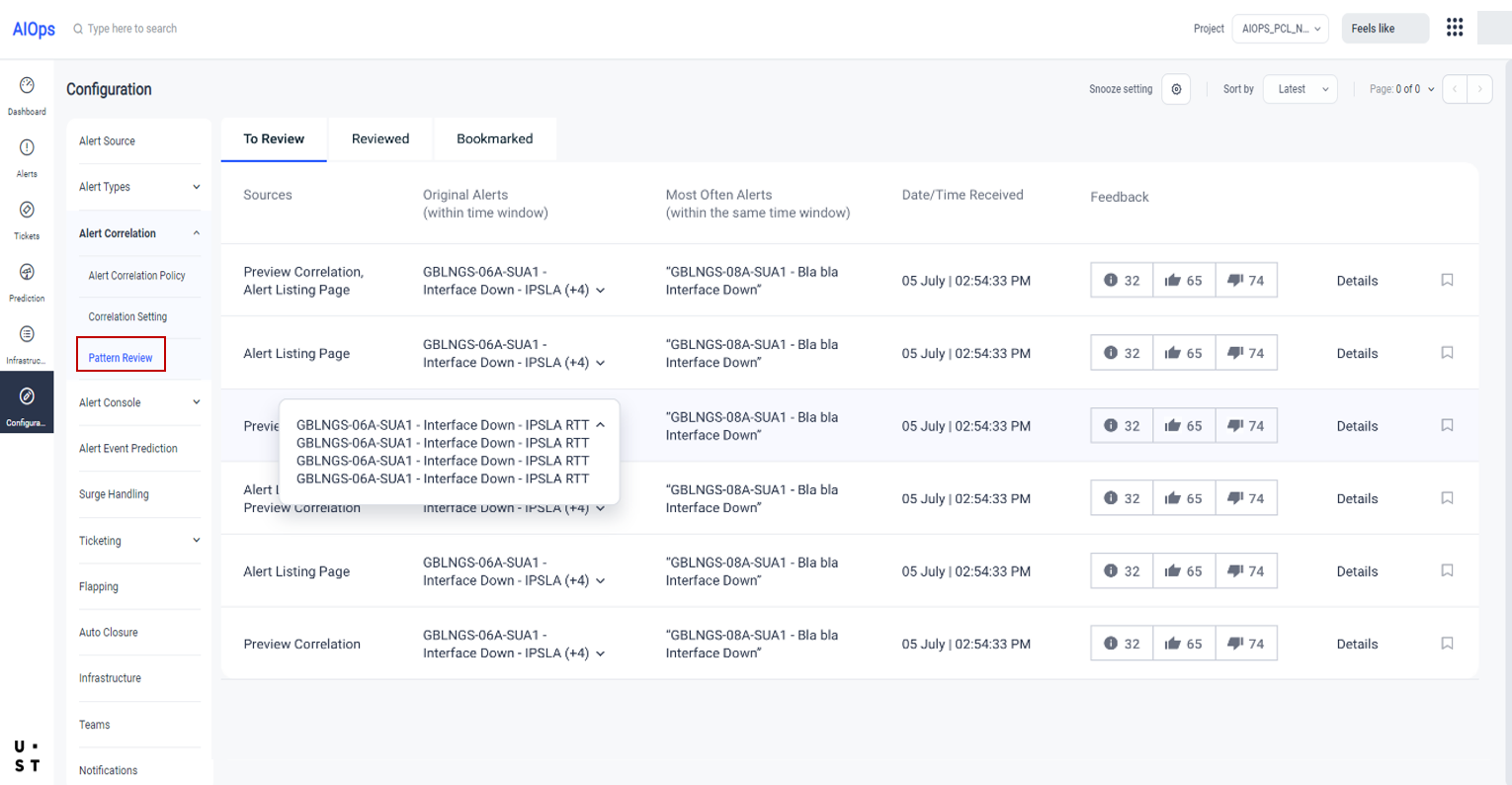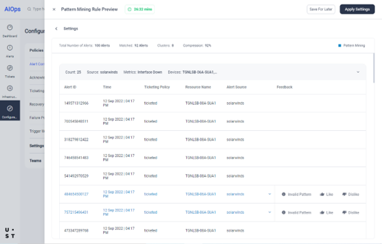 If the preview looks good, the admin can review the preview alerts which are correlated using patterns and provide feedback. With this, the settings will be completed, and pattern-based correlation can be enabled.
