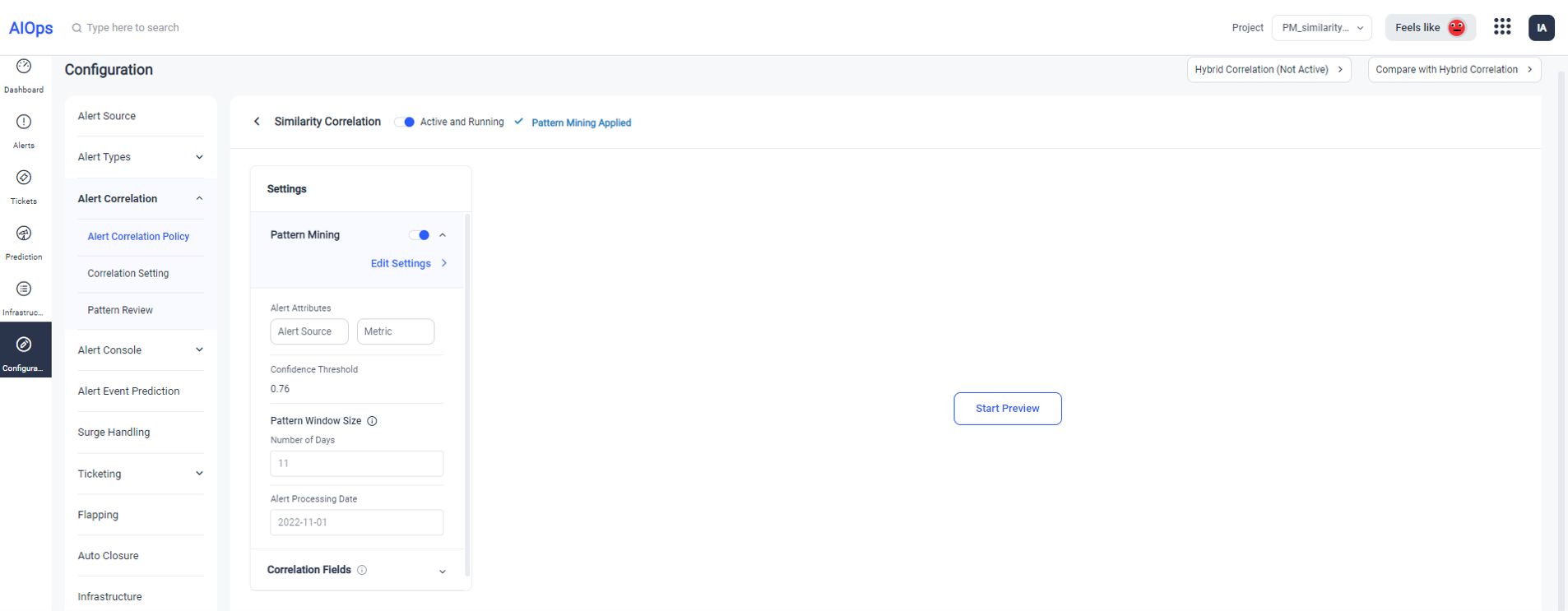 - Alert Processing Date - Date considered for pattern creation and alert correlation preview