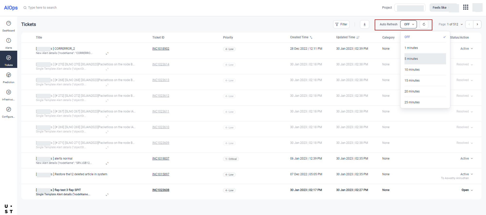 In Smartops AIOps, you can specify the refresh interval of ticket listing page so that the page will display latest information.