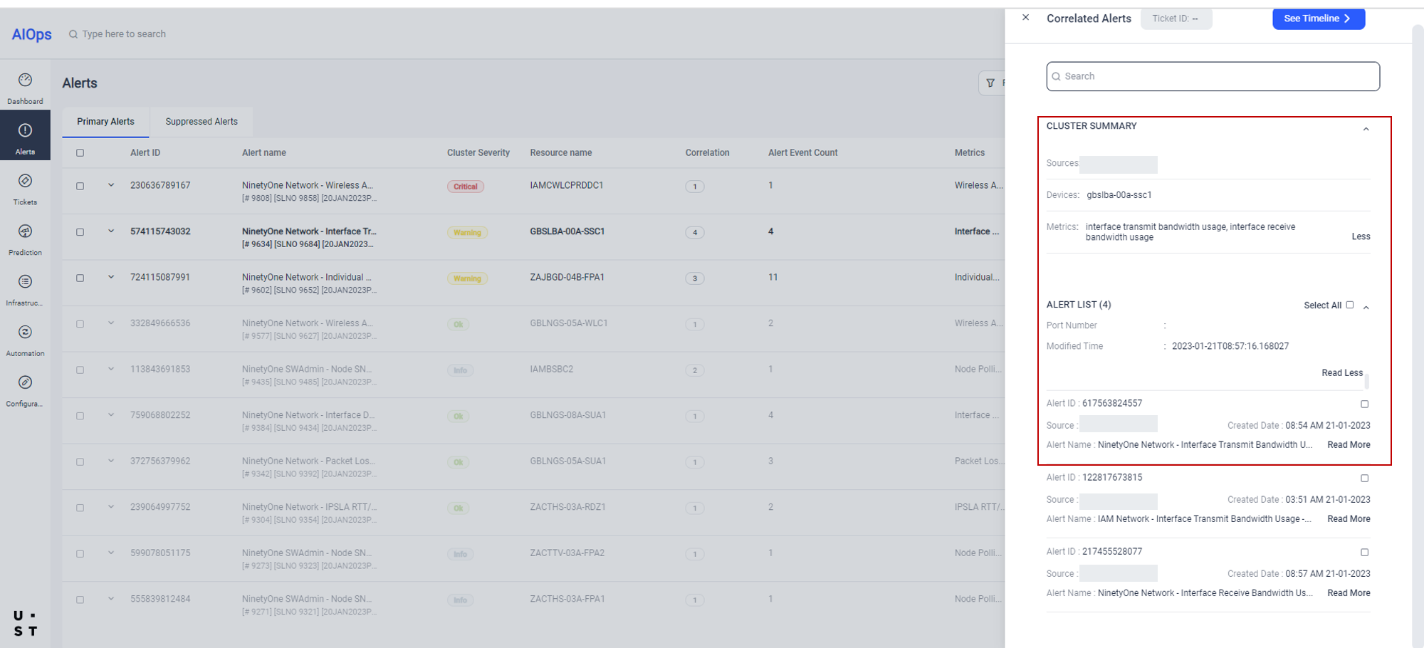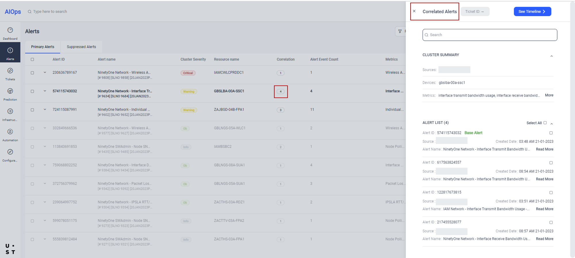 Correlated Alerts window, displays Cluster Summary and Alert List.